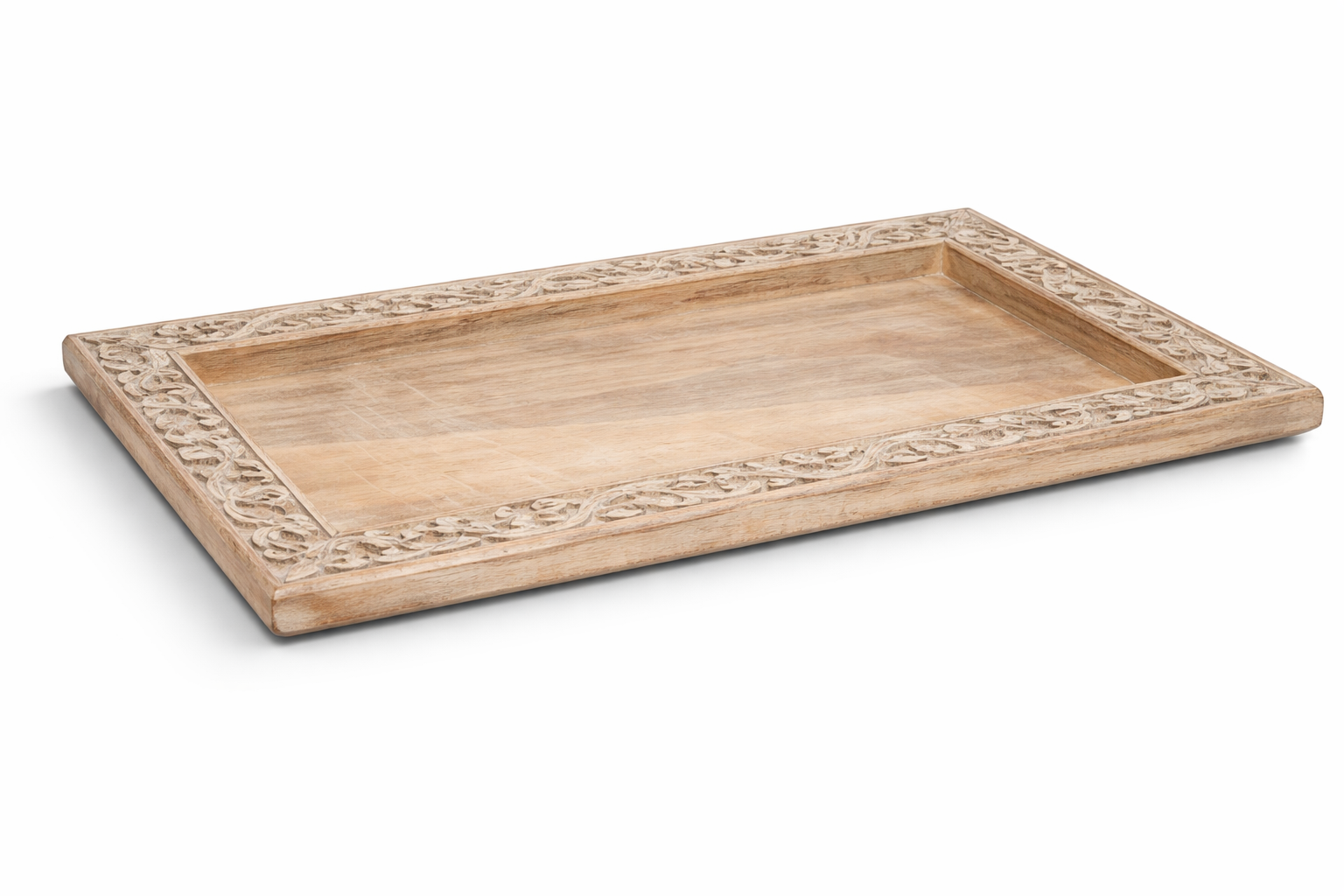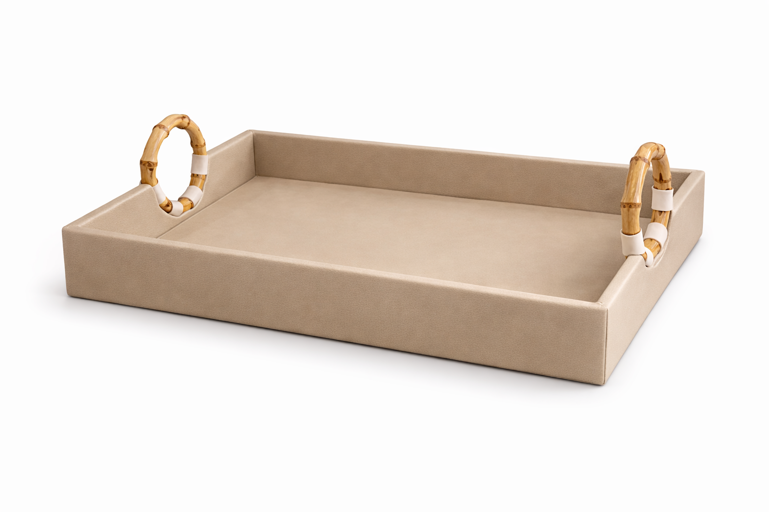 BANDEJA BEGE COM ALÇA DE BAMBU M